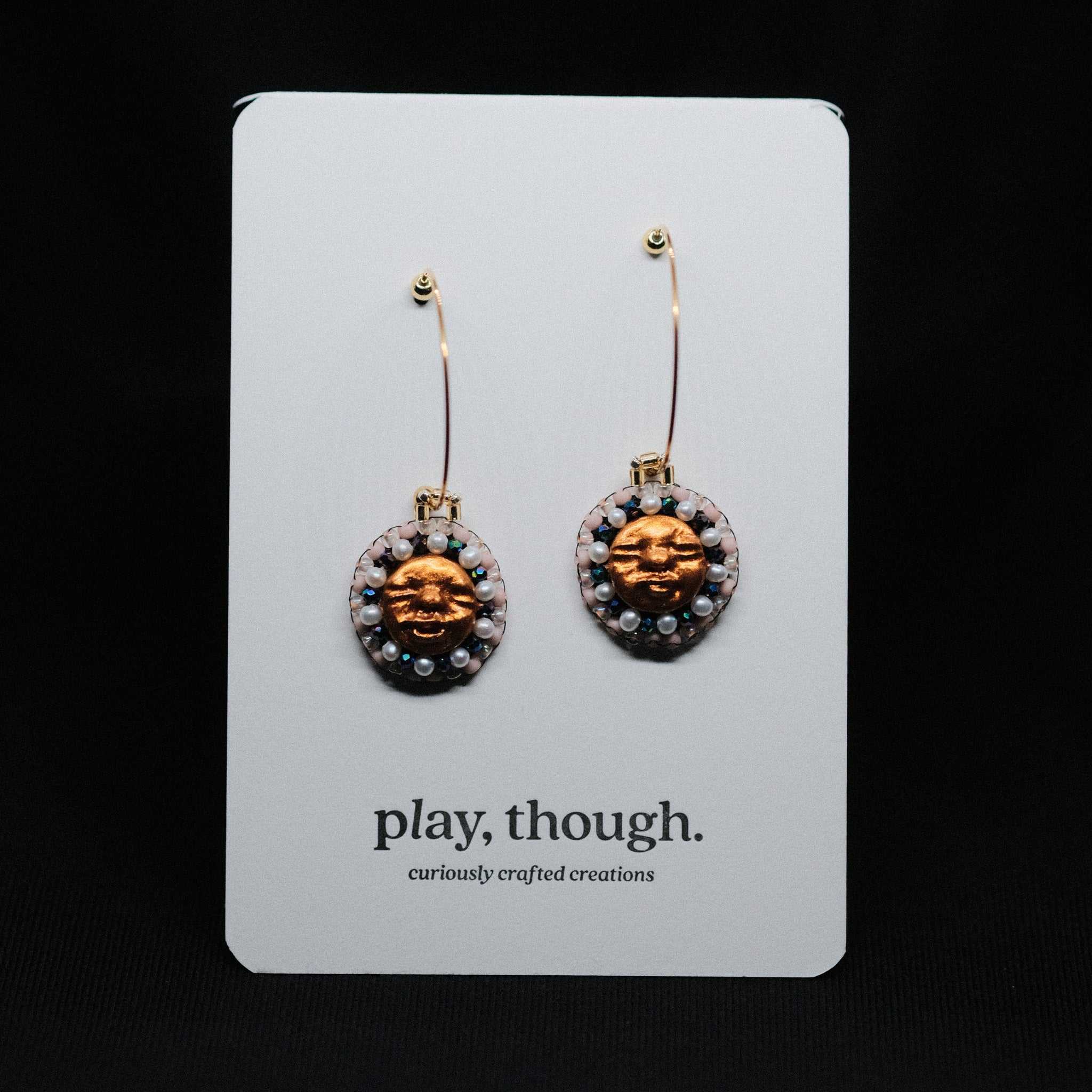 • Materials: Polymer Clay, Mica Powder, Seed Beads, Polished Glass Beads, Fresh Water Pearls, Faux Leather Backing, Nylon & Spandex Backing Cover, Stainless Steel Posts