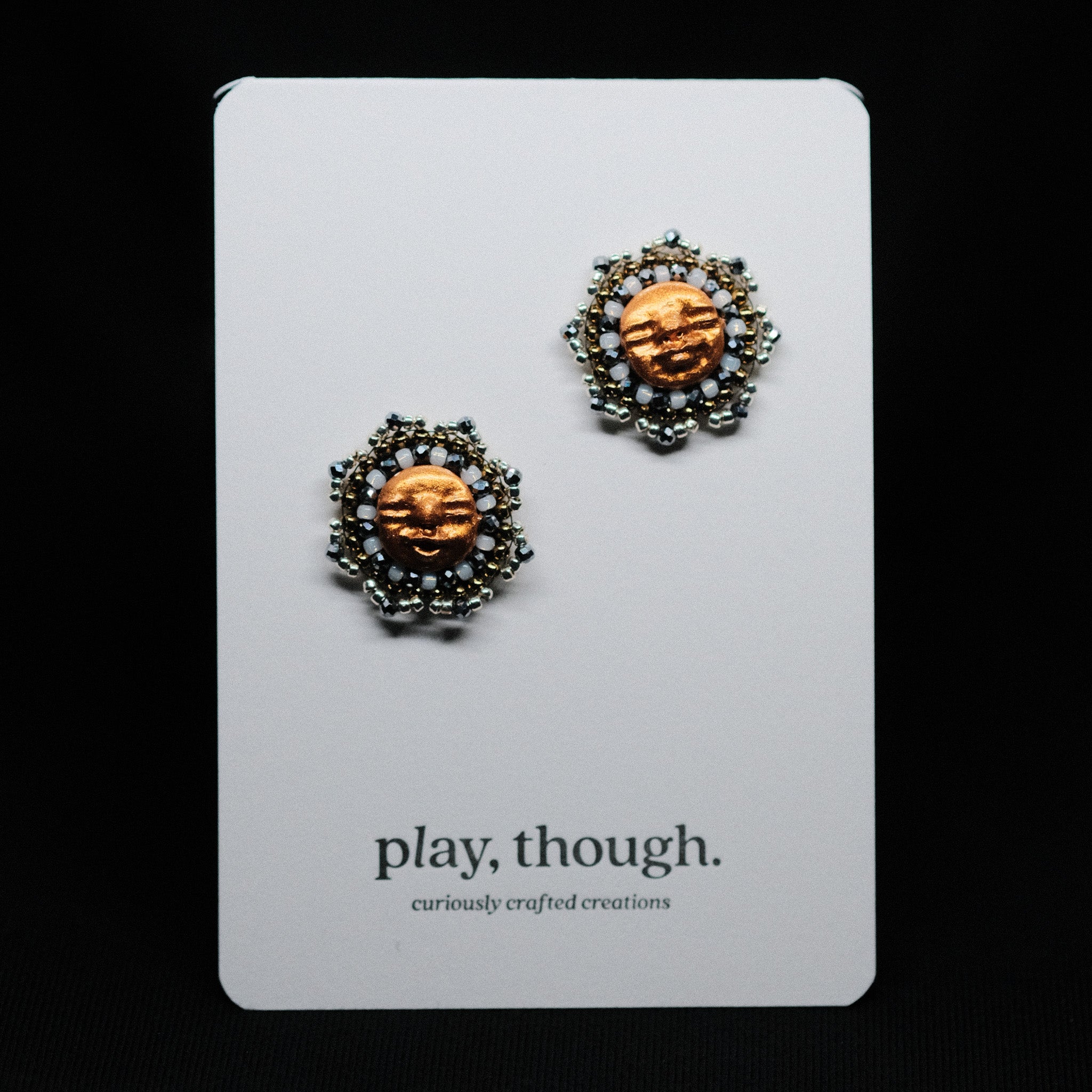 , Polished Glass Beads, Faux Leather Backing, Nylon & Spandex Backing Cover, Stainless Steel Posts